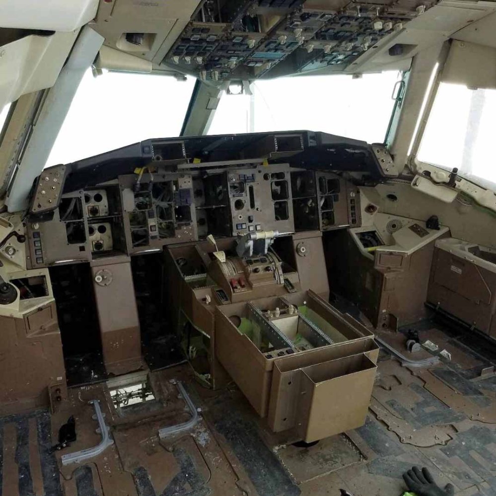 The Gimli Glider — formally, C-GAUN fin no. 604 — continued to fly after the 1983 incident before retiring to the Mojave desert in 2008 after 25 years of service. Van Veen had followed the plane over the intervening years, as one of his hobbies was buying and selling airplane parts. After an unsuccessful bid on the actual cockpit from the Gimli Glider, he got his hands on another cockpit from a retired Boeing 767.