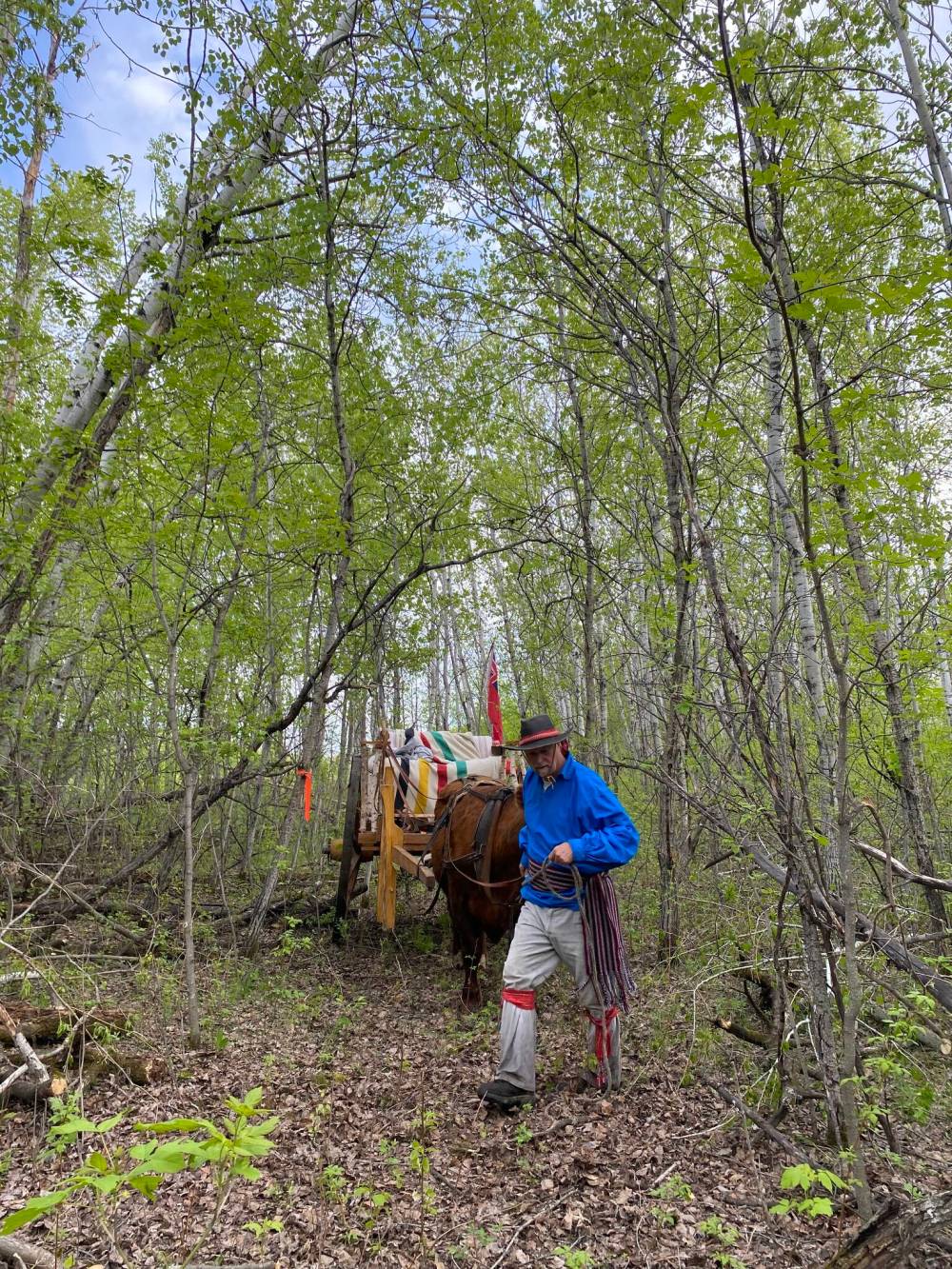 All the humanity in uniforms with their protocols to complete didn’t take away from the fun I had had in the actual crossing. Brent Chubaty, the landowner on the Canadian side, had gone the day before to flag my approach to the border, and cut a path through the new growth of trees. I had a chainsaw along to take out a couple of large trees that had fallen across the much clearer path on the American side. Patty walked with me as far she was allowed (and maybe a little further) to take some pictures. I have to admit it was quite a rush being on unaltered Red River Trail with cart and ox for the first time since 1870.