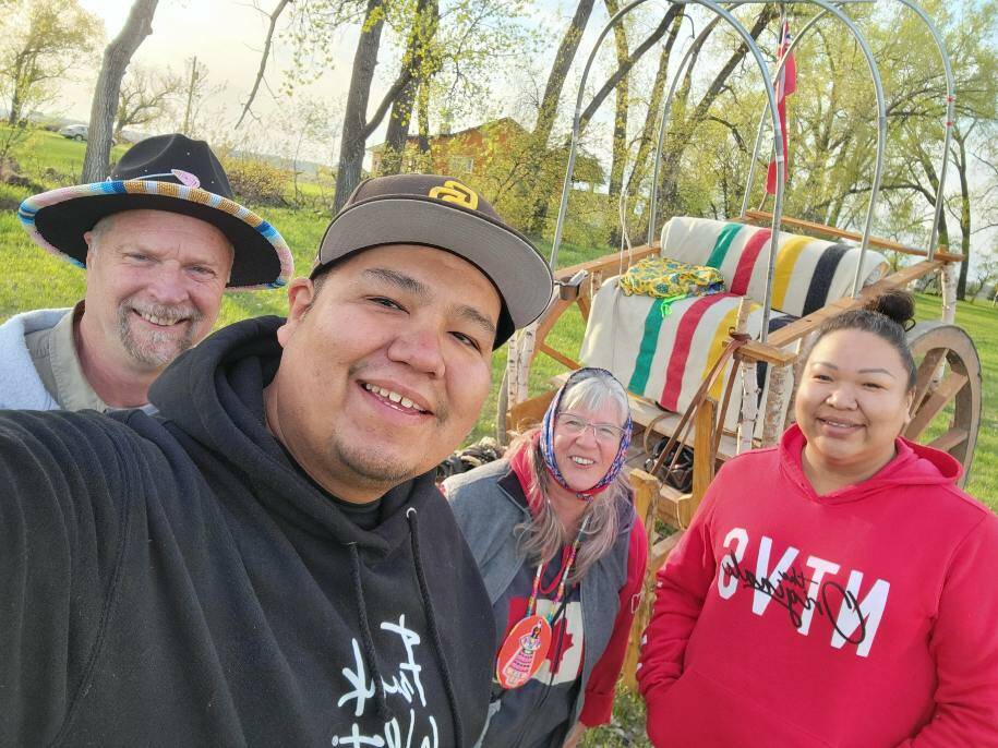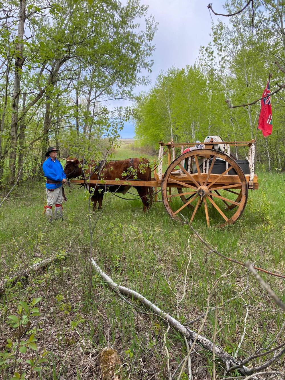 My feelings are deeply mixed. I am so thankful that 146 years after my ancestors landed here, I have a wonderful place I can call my home. Yet I am so sad that my gain came at such a loss to those entrusted by our Creator as stewards of the land. In planning our oxcart trip, I realized that the Red River Trail passed right through Roseau River First Nation. Could this be my opportunity to express my debt and gratitude? About 30 of us outsiders were graciously invited to have a ceremony with some Anishinaabe leaders on a piece of sacred ground right where the old trail crossed. With gifts and faltering words we visitors tried to describe what our hearts felt. Chief Craig Alexander humbly received what we had to offer and showered us with gifts and blessing in return. Afterwards we shared a feast of bannock, forma vorscht and stories. An old wall had started to crumble. Hugs, selfies and new bonds of friendship were filling the gap.