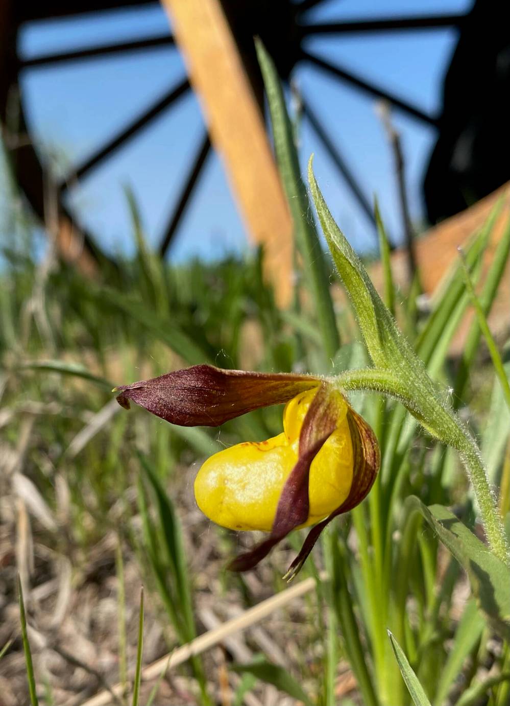 It turns out that someone else needs some metal body parts to keep those big wheels rolling. It’s Zik’s turn to wait in line for his prostheses. Before we left on our journey, Dr. Bovine (Manitoba’s Dr. Gunston of ox hoofs) tried to solve a problem the Métis cart drivers to St. Paul didn’t have to worry about — hoofs wearing down over long distances on hard surfaces. He put a thick epoxy coating under each of Zik’s eight claws. Good idea, but it was pretty much worn off by the time we were out of Winnipeg.
