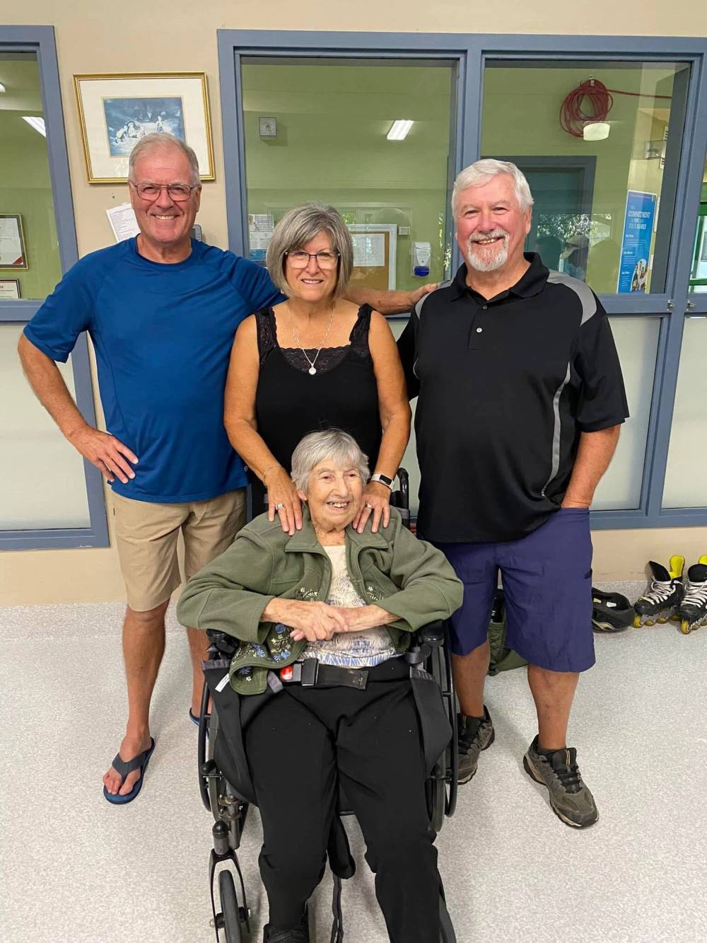 Irene surrounded by three of her four children, Max, Trina and Mike.
