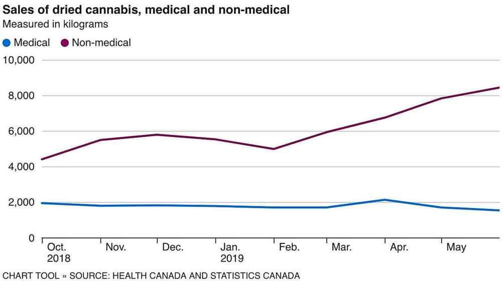 Monthly retail sales of government-regulated weed from those licensed stores, and online, have grown from $41.5 million in October to $104.5 million this past July, according to Statistics Canada. The national data agency also reports that federal, provincial and territorial governments earned a combined $186 million in cannabis excise tax and sales taxes from legal cannabis sales during the first five-and-a-half months of legalization.