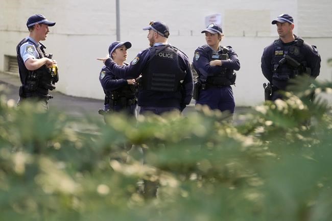 Police patrol a park where Blockade Australia protest organizer Sally-Anne Brown held a press conference in Sydney, Australia, Monday, June 27, 2022. News of Australia’s increasing greenhouse gas emissions comes as climate activist group Blockade Australia kicked off a weeklong campaign of disruption in Sydney by shutting down the downtown Sydney Harbor Tunnel during Monday morning’s peak traffic period. (AP Photo/Mark Baker)