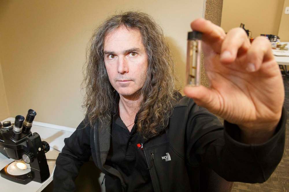 Taz Stuart, entomologist and Director of Technical Operations at Poulin's Pest Control, keeps a vial of bed bugs on him and knows everything about bed bugs. (Mike Deal / Winnipeg Free Press)