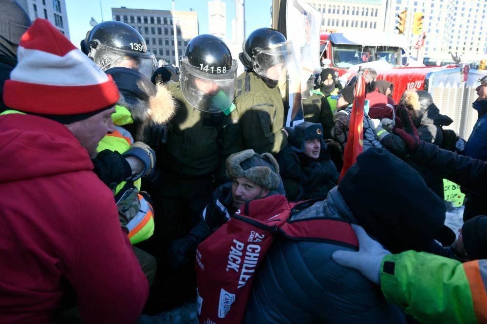 Ottawa police said on Twitter that protesters had continued “assaultive behaviour” with the police line and to prevent an escalation or further injury, mounted officers were sent in to create a safe distance between officers and protesters.
