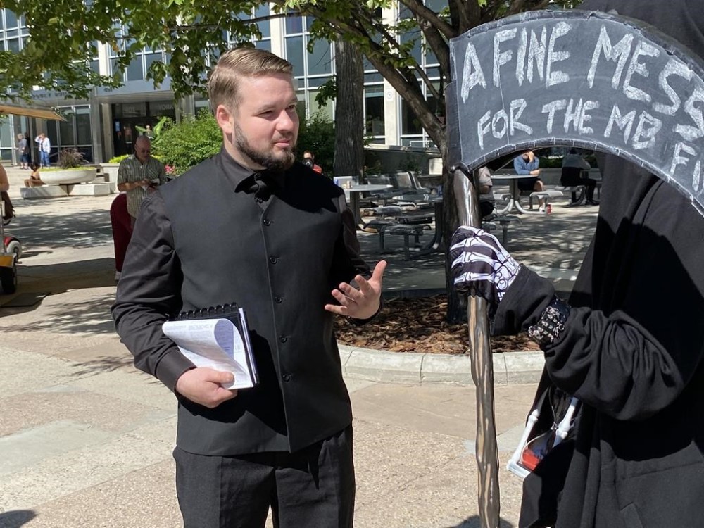 Tissen, a pastor at a rural church southeast of Winnipeg, declined to comment outside court. He spoke briefly with a man dressed up as the Grim Reaper who celebrated the convictions and fines.