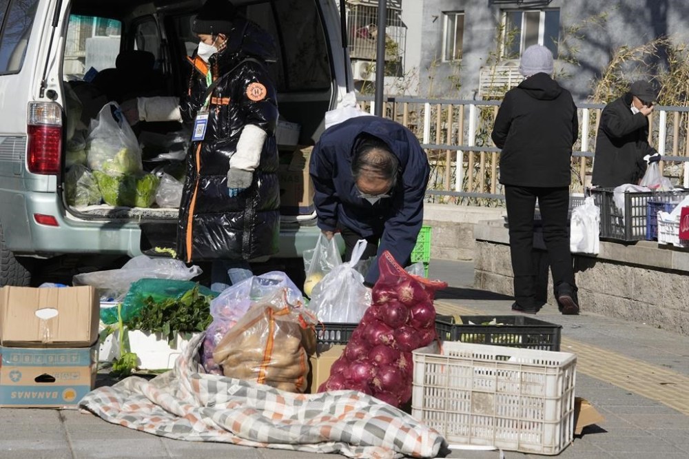BEIJING (AP) — Outside a funeral home in eastern Beijing, dozens of people were bundled up in parkas and hats against the freezing temperatures Friday evening as workers in full protective suits wheeled out coffins one by one.