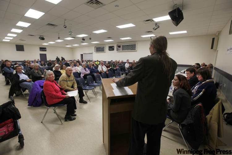 Ruth Bonneville / Winnipeg Free Press Candidates for the St. Vital byelection speak at a forum Wednesday night at Norberry Community Centre.