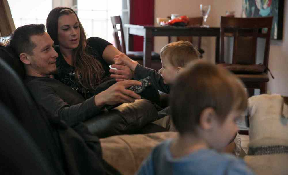 Melissa Tait / Winnipeg Free Press Mitch Fillion (left) with his partner Rick Irving in their living room.