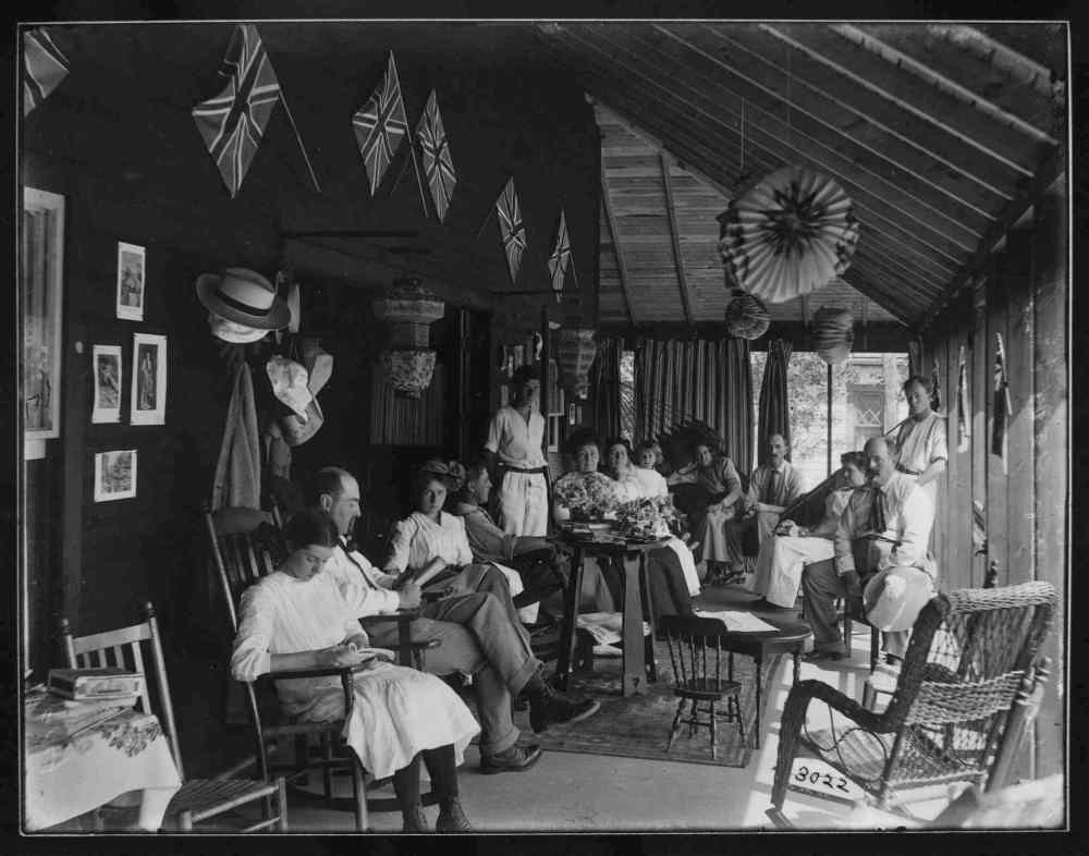 McClung described how war news gradually invaded the calm of life at the beach. The men coming out from the city “brought back stories of the great crowds that surged through the streets blocking traffic in front of the newspaper offices reading the bulletins, while the bands played patriotic airs.”