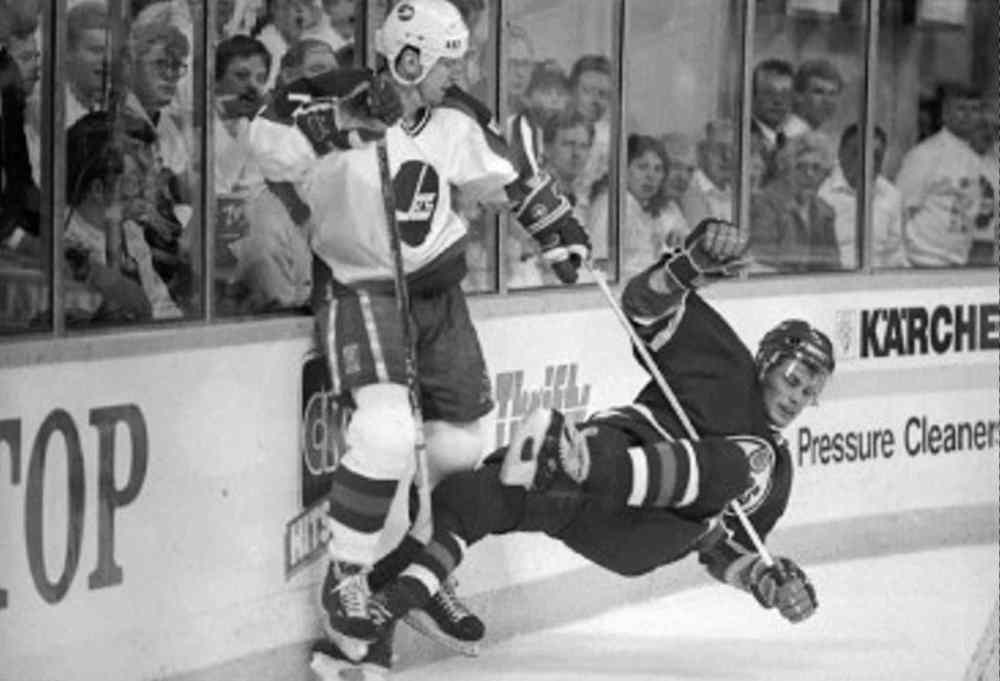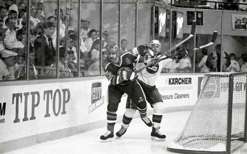 Only seconds into the fifth period, centre Thomas Steen blocked a dump-in by Edmonton’s Reijo Ruotsalainen just outside the Jets’ blue line, gobbled up the puck, and darted behind the Oilers’ defence — only to be hauled down by the Finn when he appeared to have a clear path to goaltender Bill Ranford… and pure joy beyond.