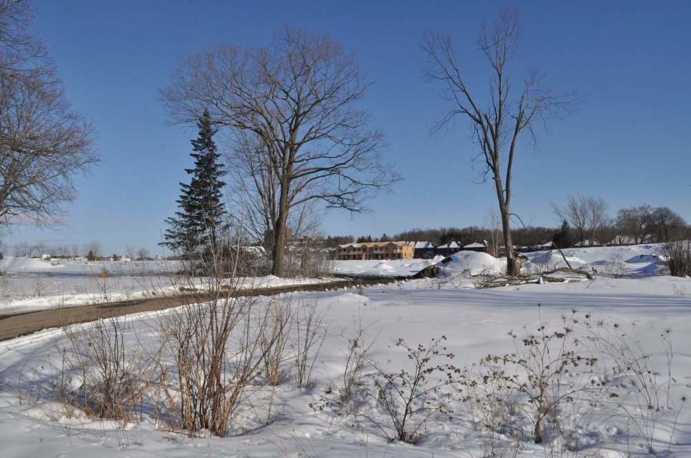 Developers have left some large trees on the site, though CLC says most had to be cleared to accomodate sewers, water mains and roads. A secondary street into the subdivision is blocked by a fence and a “no trespassing sign,” as it has to be widened and possibly rerouted.