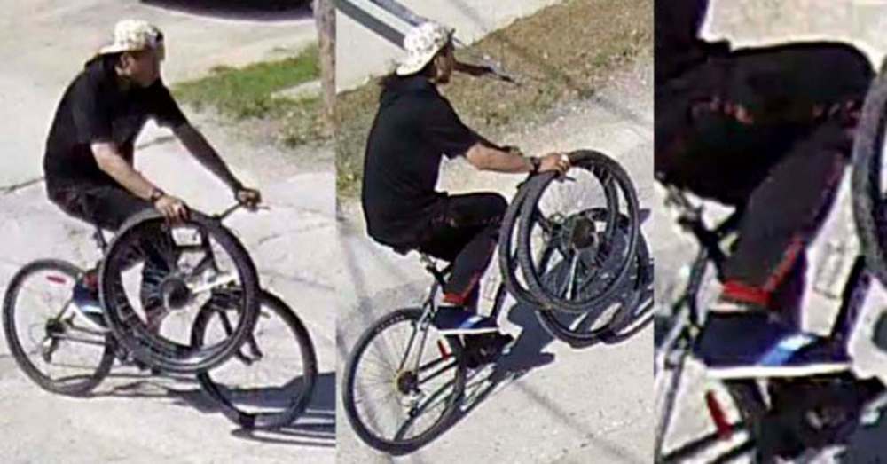 “We believe somebody knows who these individuals are. The first image shows the face of the individual, and we’re asking anyone who recognizes him to come forward. The second series of photos shows an individual riding a bike. That individual is wearing some pretty distinct clothing: black track pants with a red stripe all the way down the side and white sandals with blue straps,” Const. Jay Murray said.