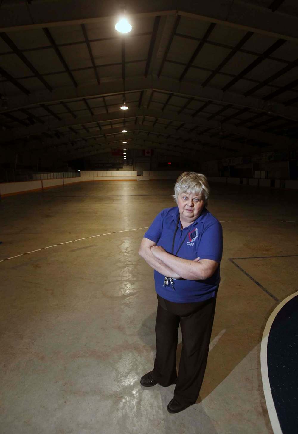 Arena manager Gisele Reynolds poses on the concrete surface of the Notre Dame Recreational Centre. (Phil Hossack / Winnipeg Free Press)