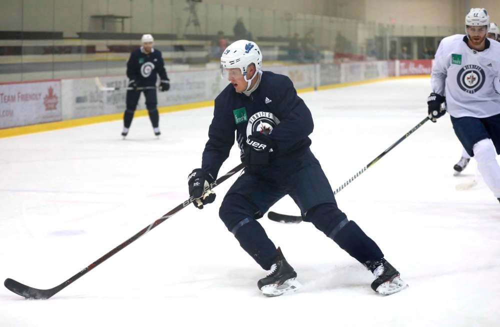 After Paul Stastny opted to sign with Las Vegas in the off-season, the question heading into camp is who is going to be Laine's centreman this year. (Ruth Bonneville / Winnipeg Free Press)
