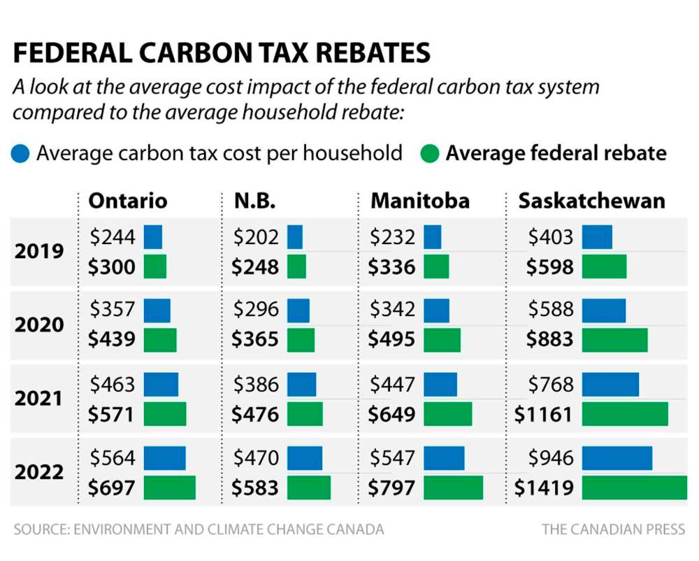 Ottawa says the average Manitoba household will pay less in carbon taxes next year than it receives in federal rebates — and the money will be paid out just months before next fall’s national election. Manitoba, Saskatchewan, Ontario and New Brunswick were the target of Tuesday’s announcement — provinces the feds had determined as not having adequate carbon tax plans.