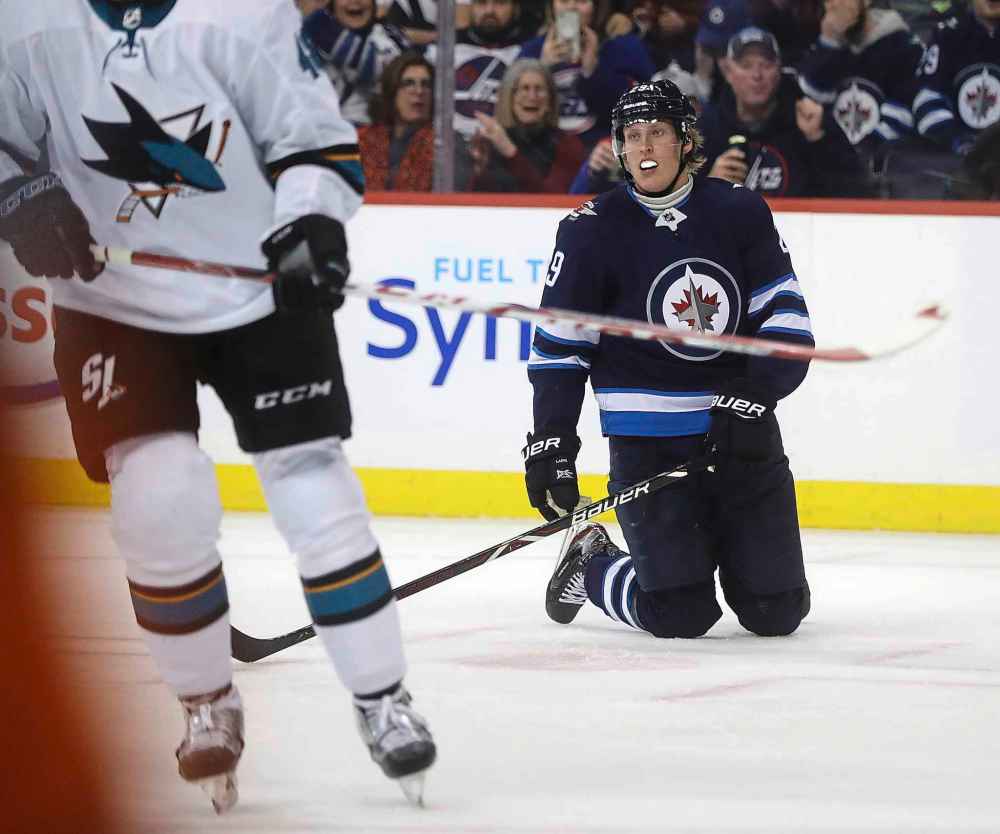 Laine was involved in the final goal of the night. But he played the role of goat as he was easily stripped of the puck in the offensive zone by Brent Burns, who then fed Joe Pavelski on a subsequent two-on-one rush for the short-handed winner.