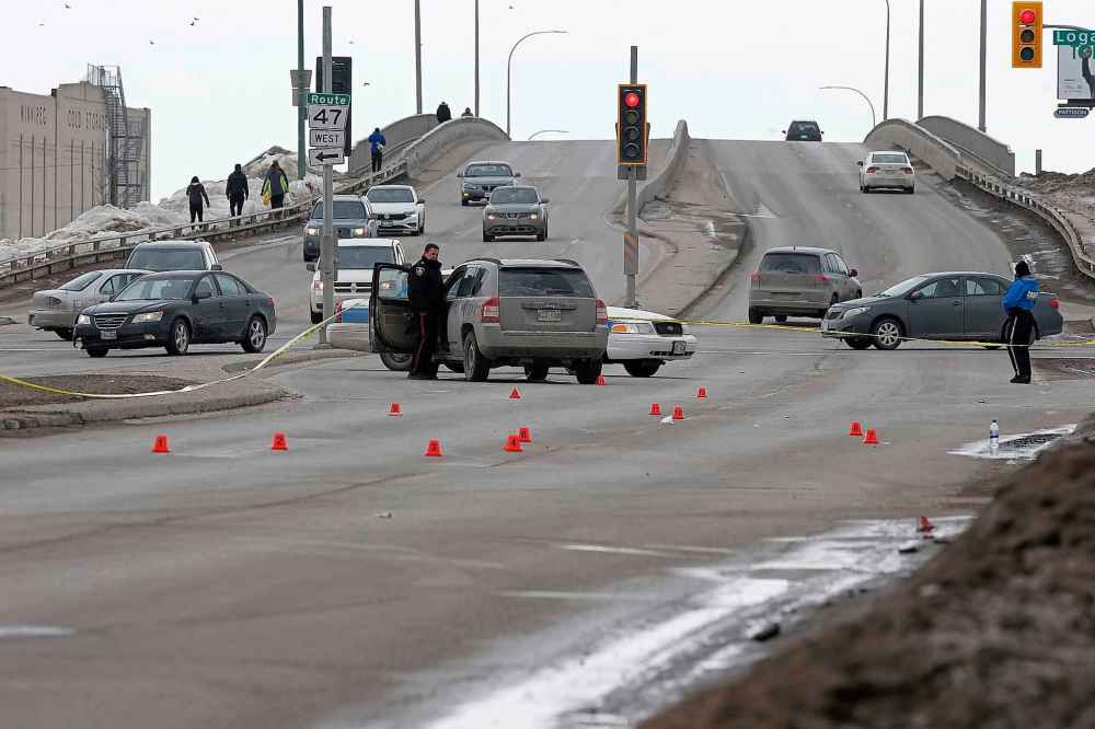 The northbound lanes of Isabel Street leading to the Slaw Rebchuk Bridge were closed to traffic Monday afternoon. Winnipeg police later put out a call for witnesses to come forward.