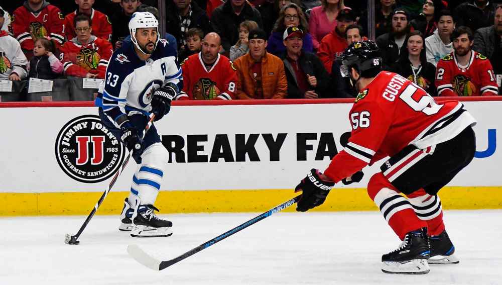 Adam Lowry evened it up just past the midway mark, as his wrist shot from a bit of an odd angle beat Hawks netminder Corey Crawford up high. Lowry now has 12 goals on the season, including three in the past three games.