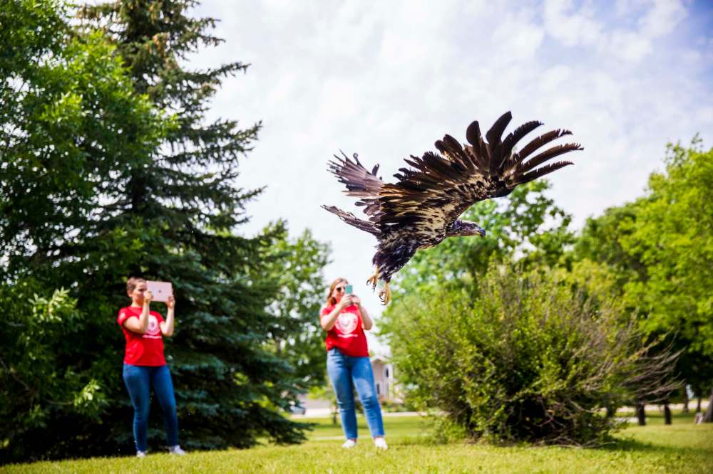 On Thursday, Ritchot Mayor Chris Ewen and Rayne Delaronde, a supporter of Wildlife Haven, were event guests who had the honour of releasing the bird into the wild.