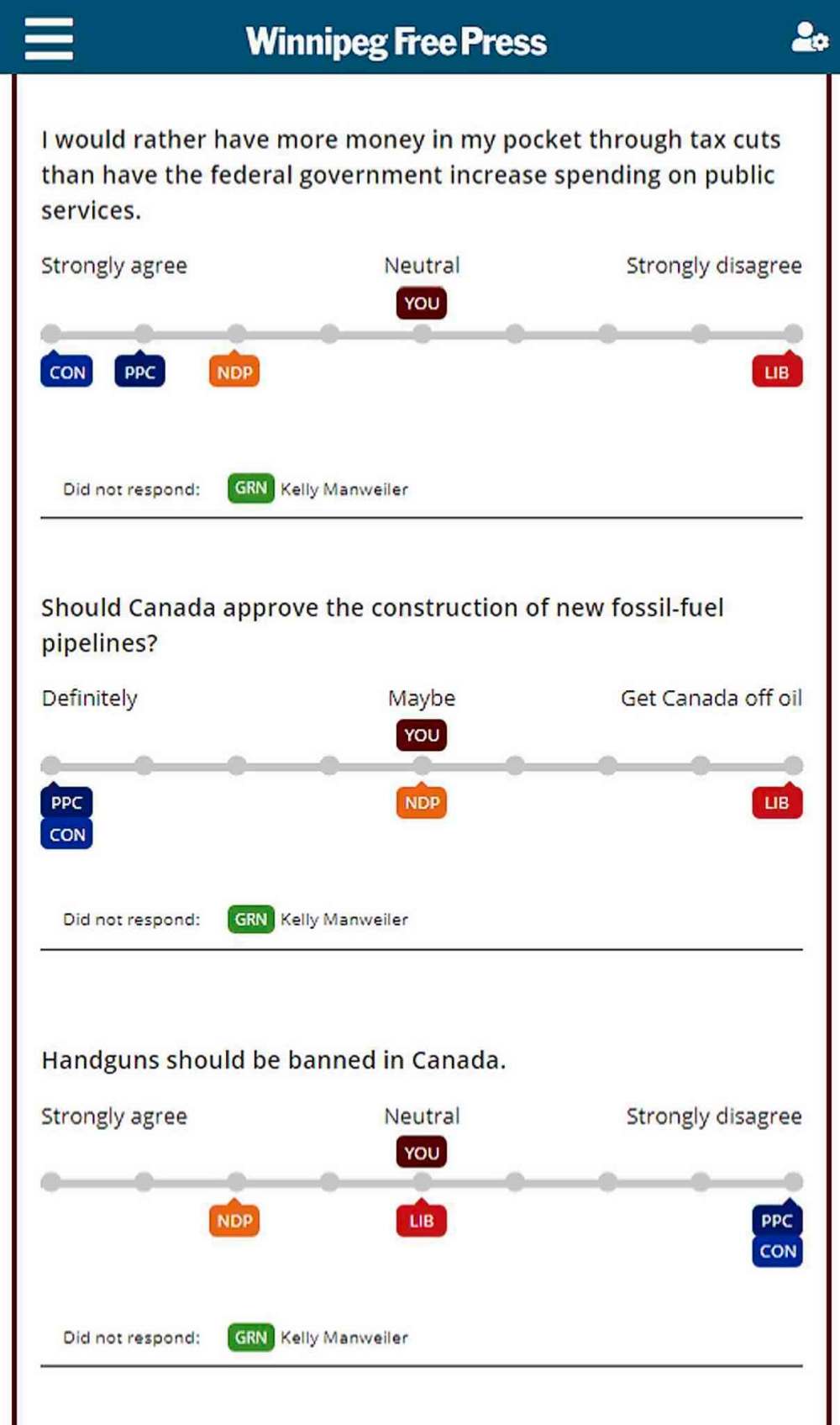 The most engaged candidates were in Elmwood—Transcona, where four of five filled out the Free Press questionnaire. (There’s still time, Green candidate Kelly Manweiler.)