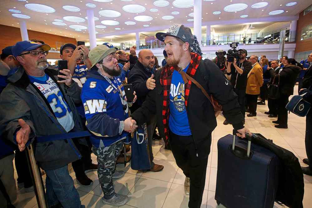 Grey Cup champs touch down to thunderous airport reception Hundreds of fans turn out to cheer Blue Bombers' return
