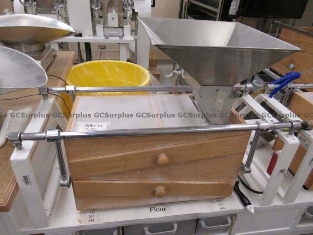What appears to be three flour sifters each come with a 120-volt motor, which can process 100 grams per minute. But beware, “some feed hoppers, electrical controls and drive motors are not included.”