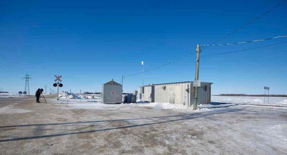 As temperatures dipped to -29 C, a group of 10 protesters had erected the rail blockade Wednesday morning in the ghost town of Diamond, roughly 25 kilometres outside Winnipeg, on the CN rail line running along Wilkes Avenue, west of Provincial Road 334.