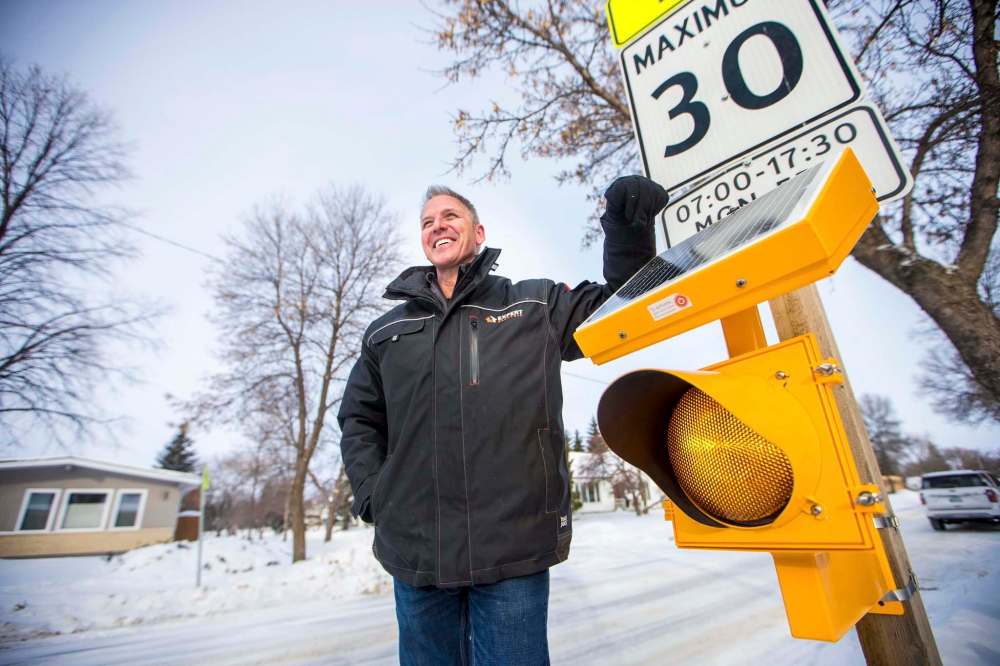 Since at least 2017, a local businessman has been willing to donate two solar-powered lights per school to the City of Winnipeg. Those eye-catching beacons are meant to better warn drivers of 30 kilometre-per-hour school zone speed limits.