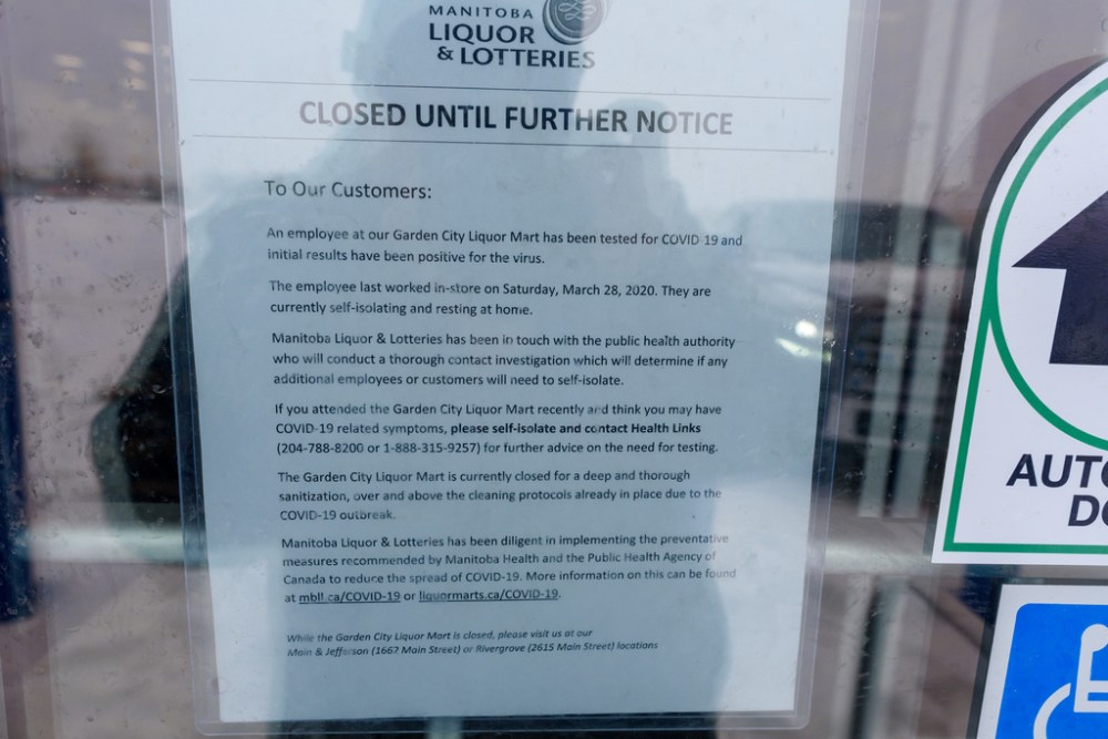 On March 27, Manitoba Liquor & Lotteries Corp. issued a tender for plastic separators for its retail stores. The following day, the employee, who later tested positive, worked their last shift at the Garden City Square Liquor Mart.