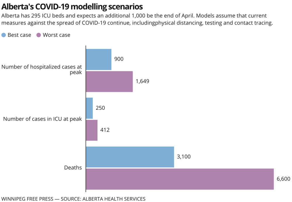 Premier Brian Pallister dismissed Ontario releasing its models and projections in the name of transparency. He pointed to an early model released by Ontario on April 6 that projected anywhere from 3,000 to 15,000 deaths in that province.