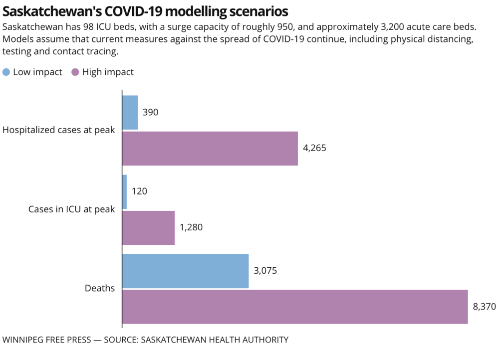 In Manitoba, that kind of modelling with potential scenarios has not been made public. For the last two weeks, government officials and chief provincial health officer Dr. Brent Roussin have indicated such projections would be made public in the coming days. Modelling and potential scenarios have been presented to the province but more data is needed before projections will be released to the public, said Roussin.