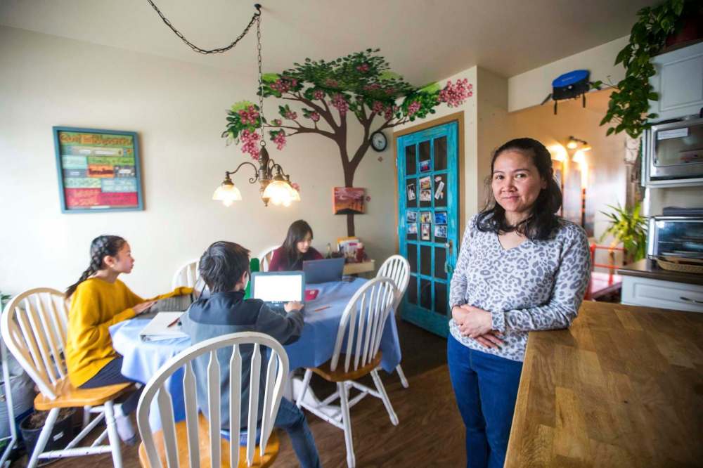 Lampa’s family has internet access, but they initially struggled without enough devices for her children in grades 4, 7 and 10. She’s grateful they’ve been able to borrow a Chromebook from Seven Oaks, and her husband could refurbish an old computer to bring their device count to three.
