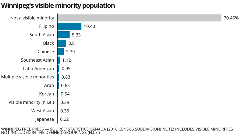 In Winnipeg, 27 per cent of the population self-identifies as a visible minority, the largest percentage of which is Filipino, followed by the South Asian, Chinese and Black communities. Twelve per cent of the population is First Nations, Métis or Inuit, or has mixed Indigenous ancestry. In the Maples, a significant section of McFarlane’s ward, the former percentage is more than double the city’s total while the latter is one per cent shy of it.
