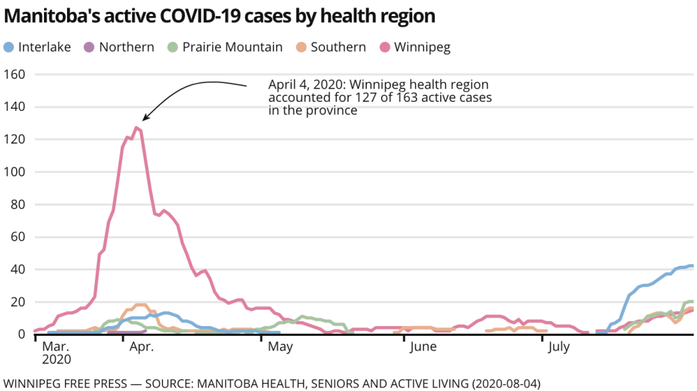 Manitoba now has 94 active coronavirus cases compared to just one on July 13. The Winnipeg health region is one of the least affected for the size of its population.