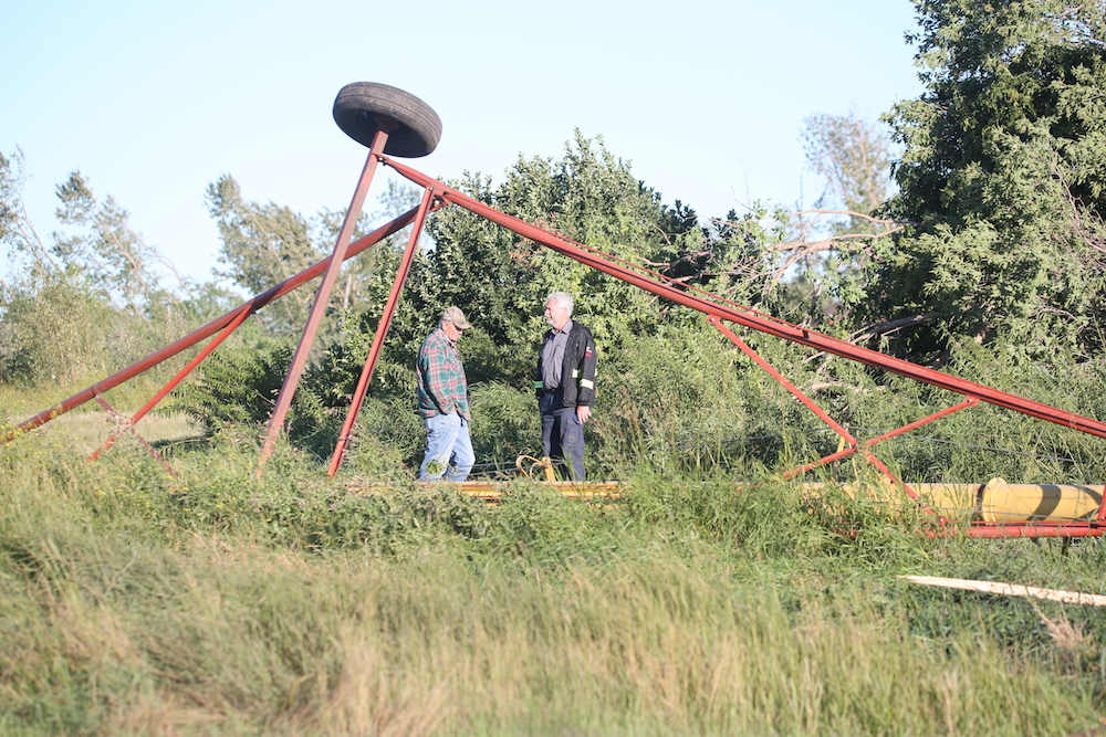 Not only was the area littered with uprooted trees, hydro poles and over various bits of debris, but a lot of Colangelo’s farming equipment was damaged beyond repair. One grain auger was completely unrecognizable, with the sheer force of Friday’s tornado bending it into a pretzel shape.