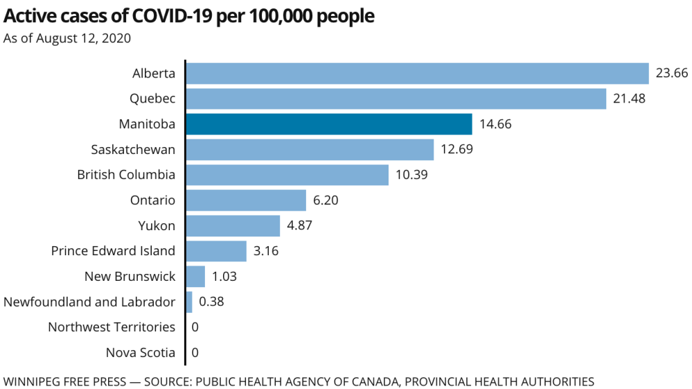 He said, ironically, the extremely low active case counts in the first half of July may have caused Manitobans to become more fearful as case numbers rebounded.