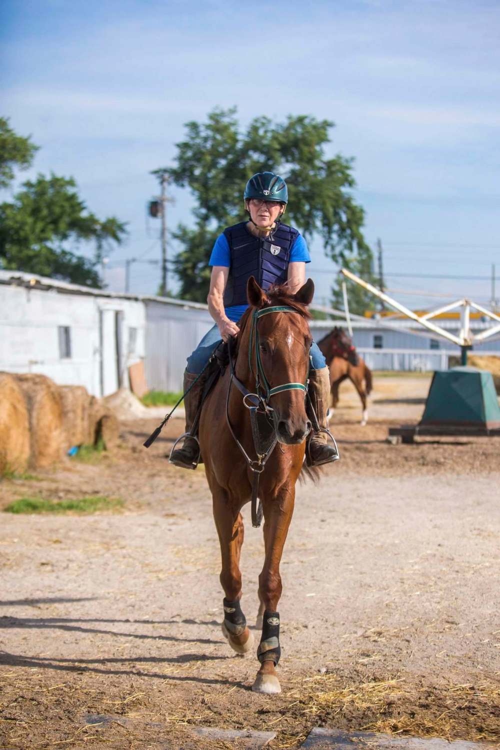 “Donna had to saddle about 20 horses a day,” said Marion. “So she hauled me out there one day and said they had to go out. She said, ‘I’ll saddle them up and you just get on them and go for a ride, and I’ll come out there and tell you what to do.’”