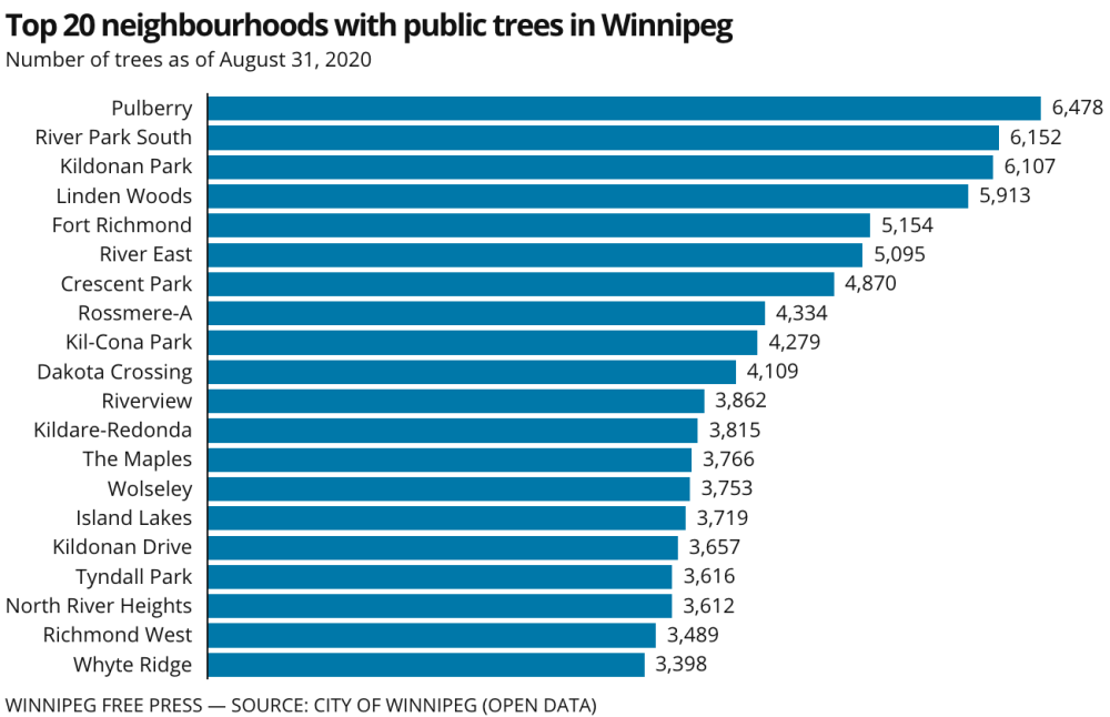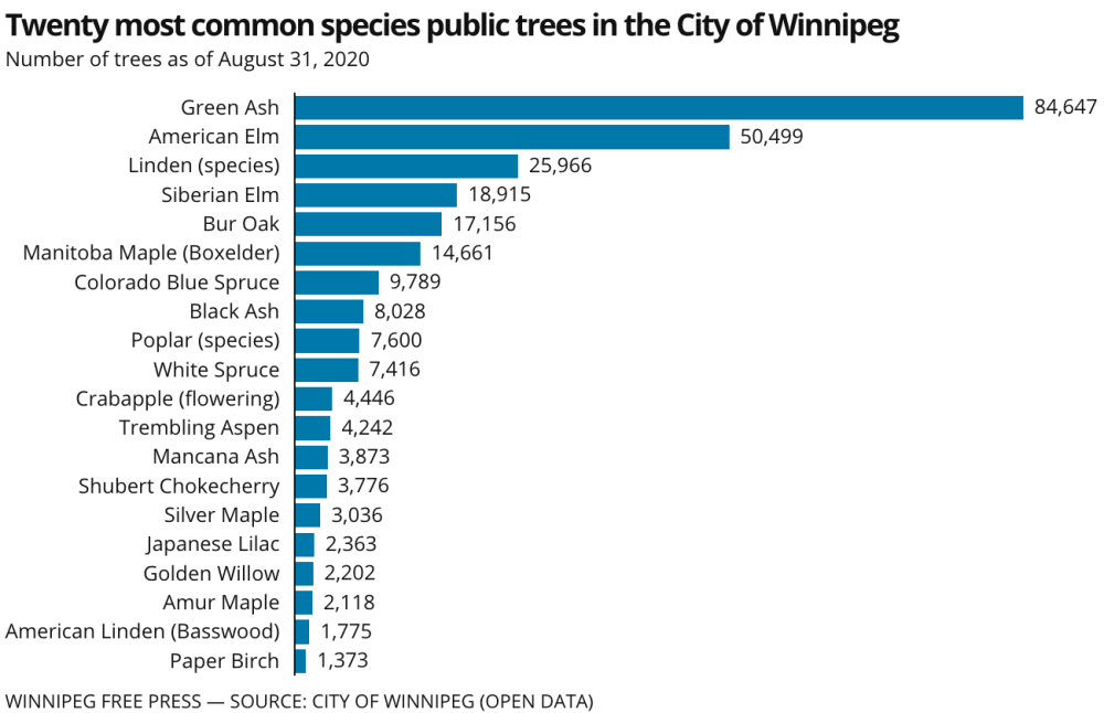 Winnipeg’s forestry branch removed 6,781 trees and replaced 190 trees, from Sept. 19, 2019 — the date Mayor Brian Bowman announced the One Million Tree Challenge — and July 31, 2020, documents obtained by the Free Press show.