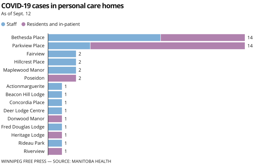 In Steinbach, Maplewood Manor, about 500 metres away from Bethesda Place, had two cases of the virus among employees as of Sept. 22.