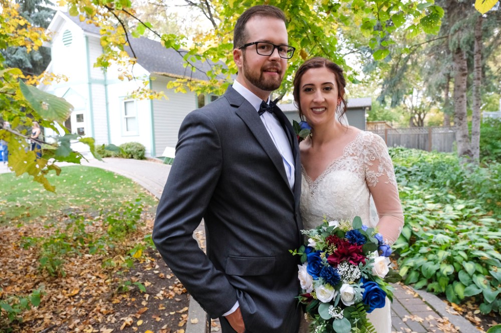 When the couple got engaged last July, they circled the date on the calendar, expecting a beautiful autumn ceremony at the Leo Mol Sculpture Garden, the surrounding foliage turning from green to striking amber and golden hues.