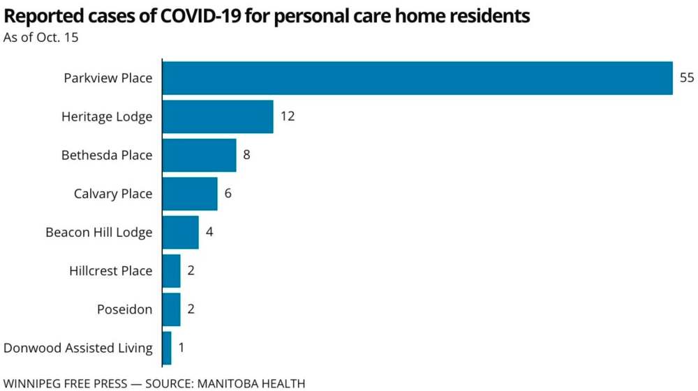 The privately operated Winnipeg home has already been under critical (red) restrictions since mid-September. Roussin couldn’t give specifics about what caused the virus to spread so quickly within Parkview Place, but noted most of the positive cases were contracted at the same time.