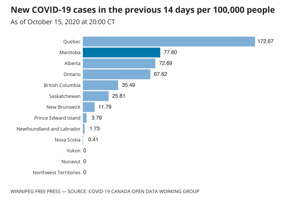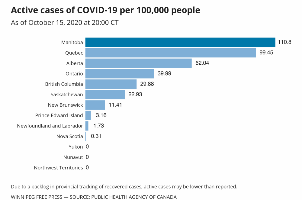 Meanwhile, Manitoba ranked second in the proportion of active cases across Canada.