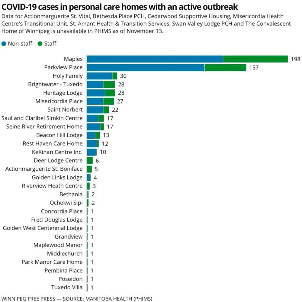Kaminski said 25 of Winnipeg’s 38 personal care homes are dealing with COVID-19 outbreaks.