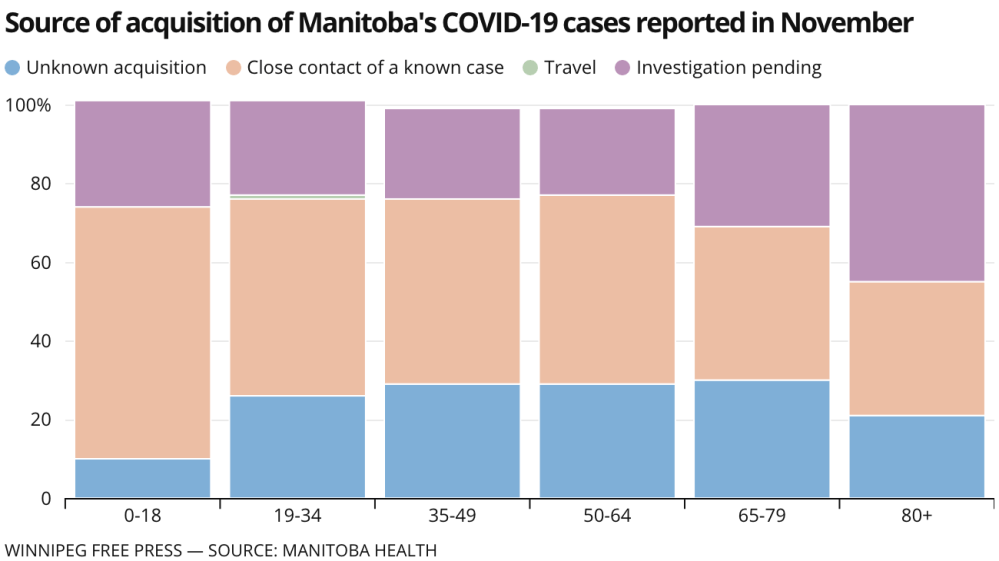 According to data provided to the Free Press by the provincial government, of the 9,486 COVID-19 cases reported so far this November, there have been 1,499 infections in people 18 years old or younger.