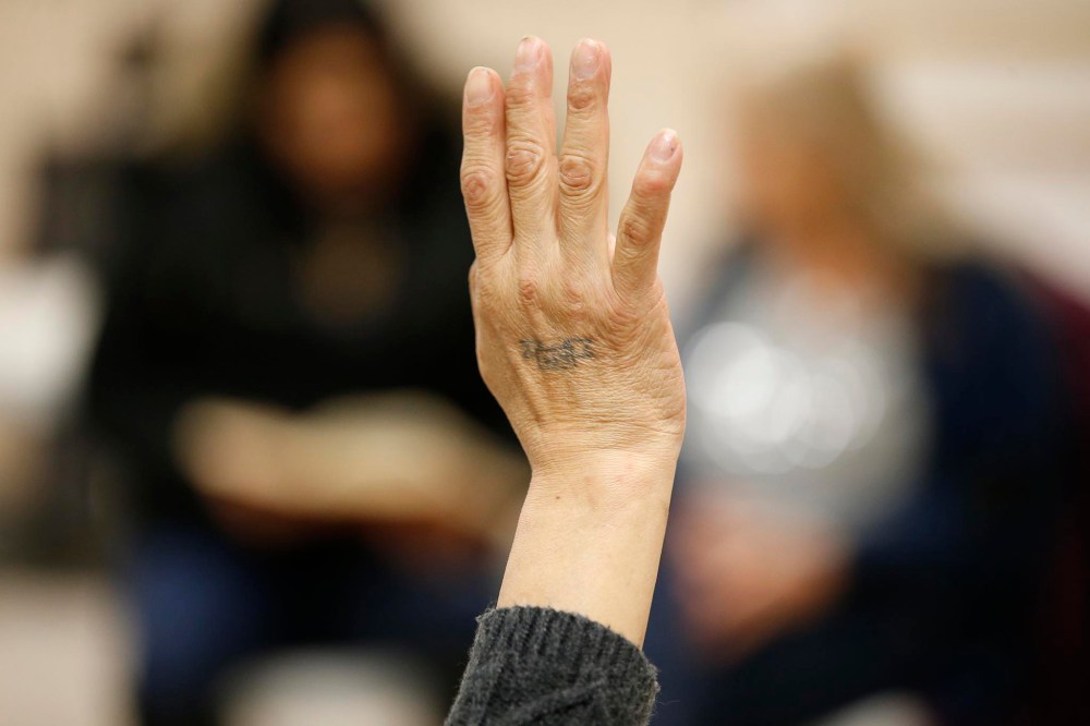 After parking on the side of the road, they walk into the warmth of the building, stopping quick to chat with a staff member at the entrance, before heading down to the basement, where they have a small room booked. They sit in a circle and pass out hymnals.