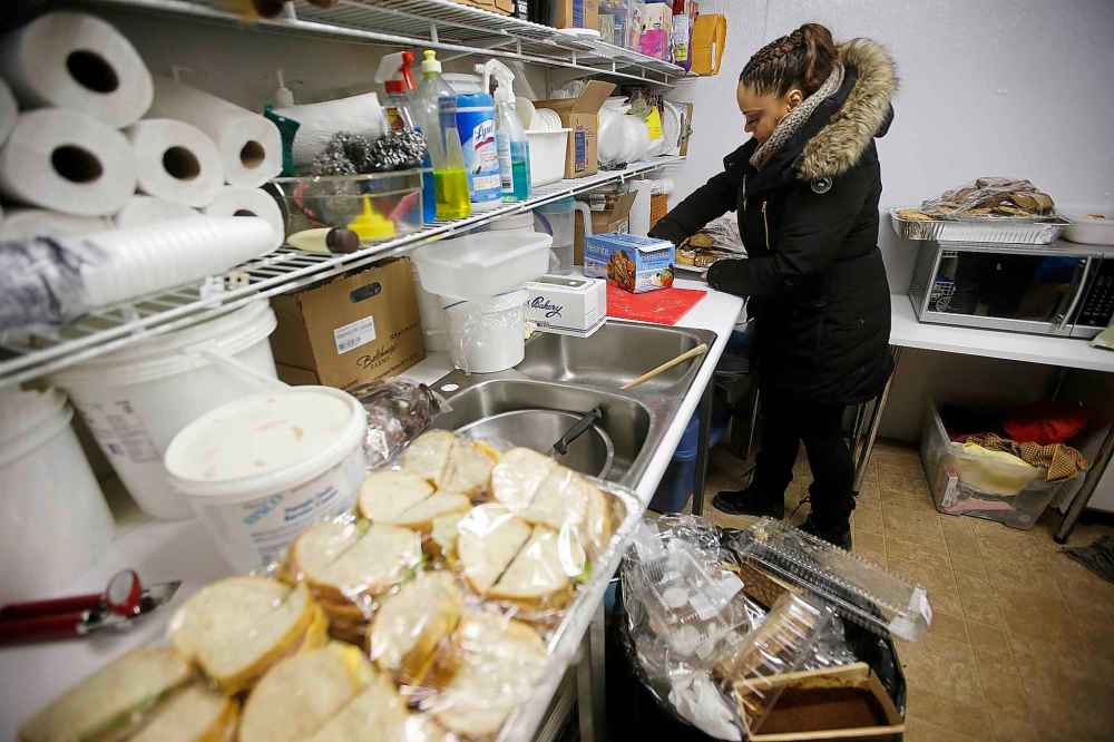 It’s an assembly line that rivals a professional sandwich shop. In total, 30 loaves of bread are used to prepare tonight’s offerings. In the kitchen, Martens’ wife heats the soup, while another volunteer lines a serving tray with cookies and dainties, muffins and pastries.