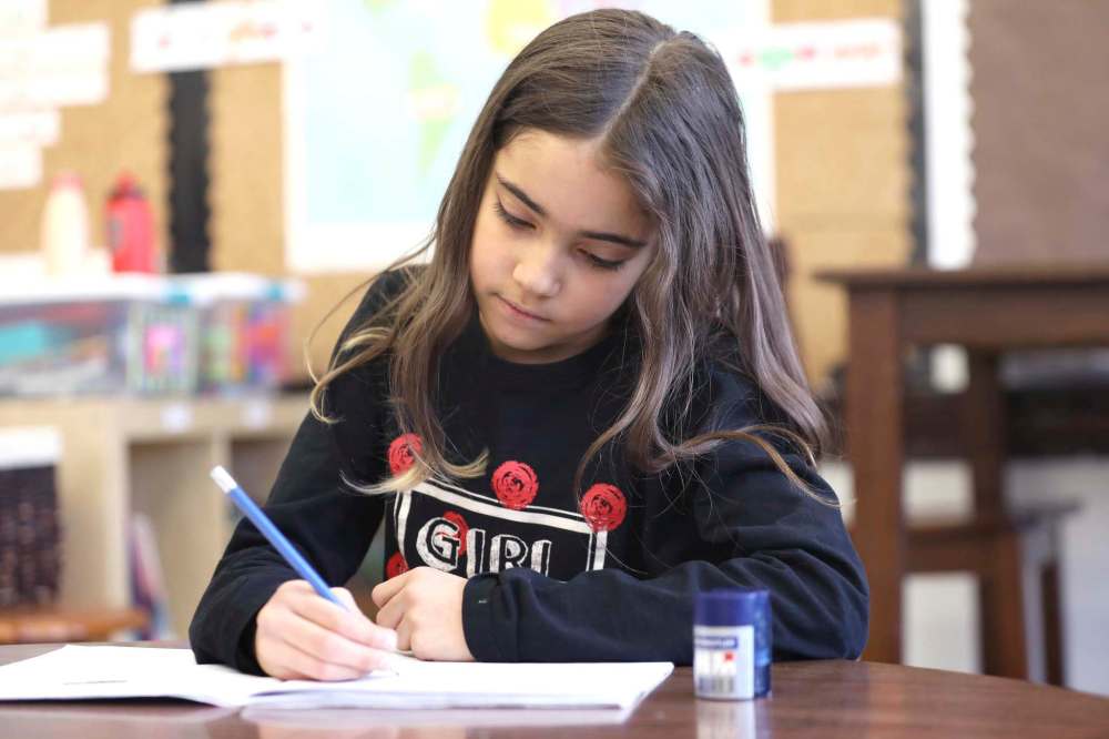 She is a big fan of her teacher, her teacher’s five stuffed sloth toys and art class, in which she is currently tracing, drawing and painting landscapes.