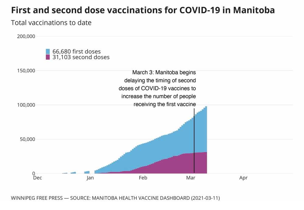 It’s estimated all adult Manitobans who want it will get a single shot by the end of mid-May or mid-June.