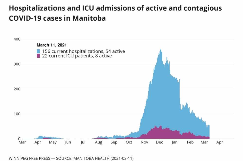 As of Feb. 27, the latest data available, a total of 2,262 Manitobans had been hospitalized with COVID-19, and 423 had been admitted to intensive care.